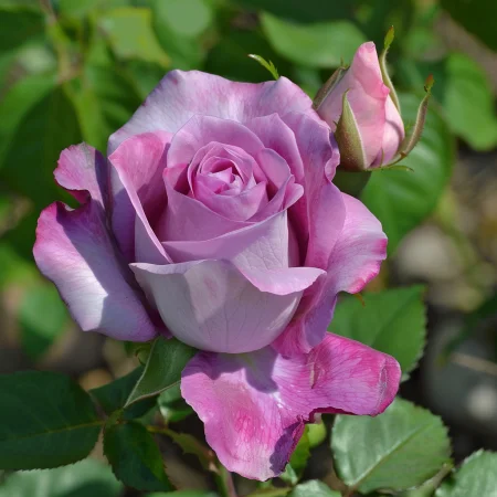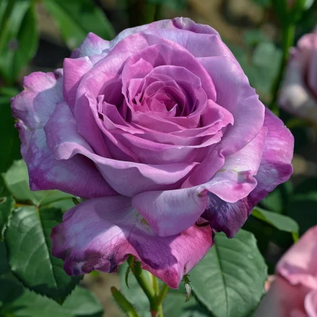 Όμορφη ποικιλία κήπου τριαντάφυλλου με κομψά, ημι-μεγάλα άνθη σε έντονο μπλε-μωβ χρώμα με λεπτό άρωμα. Αναπτύσσεται ως συμπαγές θάμνος, κατάλληλος για παρτέρια, περιθώρια ή γλάστρες, με υγιή, πράσινα φύλλα και ανθεκτικότητα σε ασθένειες. Ανθίζει επανειλημμένα κατά τη διάρκεια της σεζόν και προτιμά ηλιόλουστες θέσεις με καλά στραγγιζόμενο έδαφος.
