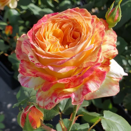 Εντυπωσιακή ποικιλία θάμνου τριανταφυλλιάς με μεγάλα, πυκνά άνθη σε απαλούς ροζ-μωβ τόνους. Τα άνθη είναι έντονα αρωματικά και ανθεκτικά, με πλούσια και επαναλαμβανόμενη ανθοφορία από την άνοιξη έως το φθινόπωρο. Ο θάμνος είναι ζωηρός, με όρθια κλαδιά και ανθεκτικό στο πράσινο, ανθεκτικό σε ασθένειες. Κατάλληλη για κήπους, ροδακινιές και κομμένα άνθη.