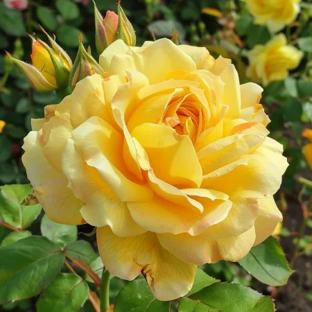 Κλασική ποικιλία τσαγιού-υβριδικού τριαντάφυλλου με έντονα κίτρινα, αρωματικά άνθη που μπορεί να ξεθωριάσουν ελαφρώς σε κρεμ χρώμα κάτω από έντονο ήλιο. Τα άνθη είναι μεσαίου μεγέθους, με πολυάριθμα πέταλα, συγκεντρωμένα σε πυκνές ταξιανθίες. Το φυτό είναι υγιές, με όρθια στελέχη και συμπαγή μορφή (60–80 εκ.), κατάλληλο για κήπους και κοπή για μπουκέτα. Ανθίζει άφθονα όλο το καλοκαίρι σε ηλιόλουστη έκθεση και καλά στραγγιζόμενο έδαφος.
