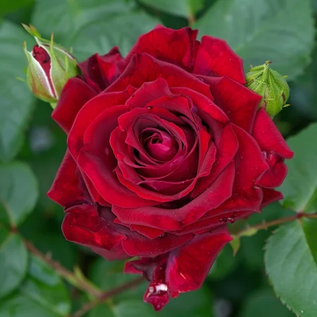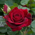 Αναρριχώμενο ποικιλιακό τριαντάφυλλο με μεγάλα, φωτεινά κόκκινα μονά άνθη (περίπου 8–10 εκ. διάμετρο) με κίτρινα στήμονες στο κέντρο. Ανθίζει άφθονα το καλοκαίρι και το φθινόπωρο, με τα άνθη να ξεχωρίζουν όμορφα πάνω σε σκούρα πράσινα, γυαλιστερά φύλλα. Το φυτό φτάνει τα 2–3 μ ύψος, κατάλληλο για φράχτες, τοίχους και πέργκολες, και είναι σχετικά ανθεκτικό σε ασθένειες.