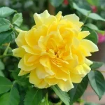 Φλοριμπούντα τριαντάφυλλο με έντονα κίτρινα, ρυτιδωμένα άνθη με κρόσσια, ύψος 50–60 εκ., επαναλαμβανόμενη άνθιση και καλή αντοχή σε ασθένειες. Ιδανικό για κήπους, παρτέρια και δοχεία.