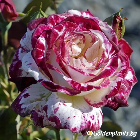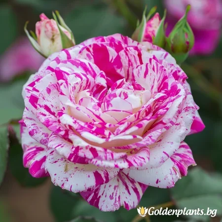 Διακοσμητική ποικιλία με εξαιρετικά ελκυστικά δίχρωμα άνθη — λευκά πέταλα με κόκκινες ή ροζ νευρώσεις. Τα άνθη είναι μεσαία έως μεγάλα, συχνά ημίδιπλα, με ευχάριστο άρωμα. Το φυτό είναι συμπαγές, με σκούρα πράσινα, γυαλιστερά φύλλα, κατάλληλο για κήπους, παρτέρια και βάζα. Η ποικιλία είναι γνωστή για την ανθεκτικότητά της και τη μακρά περίοδο άνθισης.